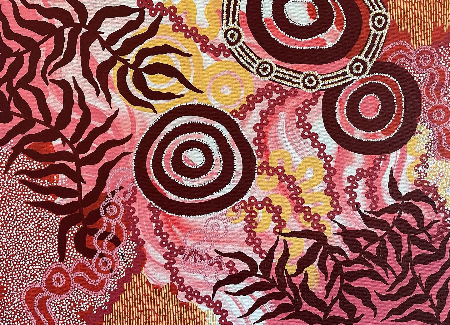 This piece came from a place of just painting how I was feeling. It reflects that connection to Country, while also sitting in a heavier space at the same time.